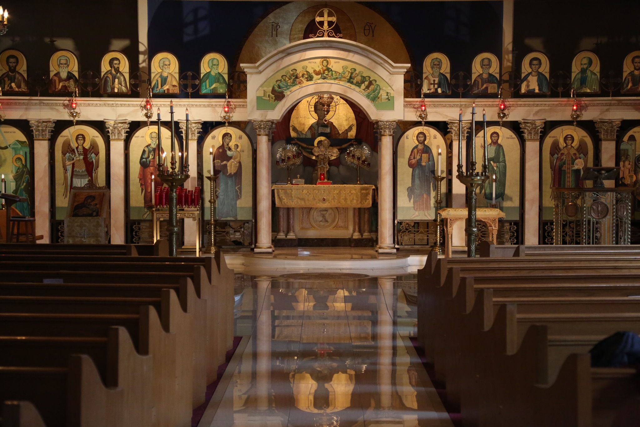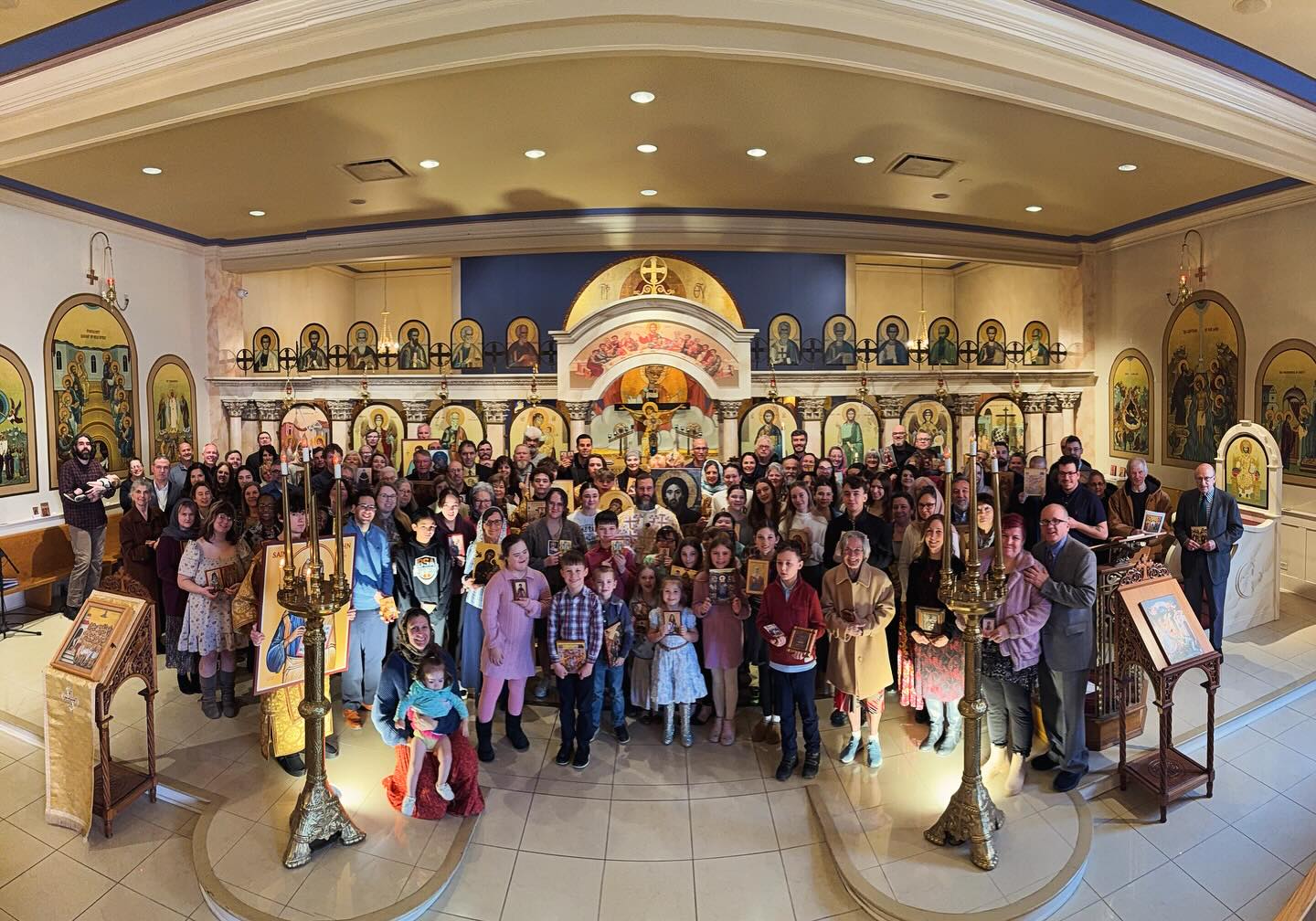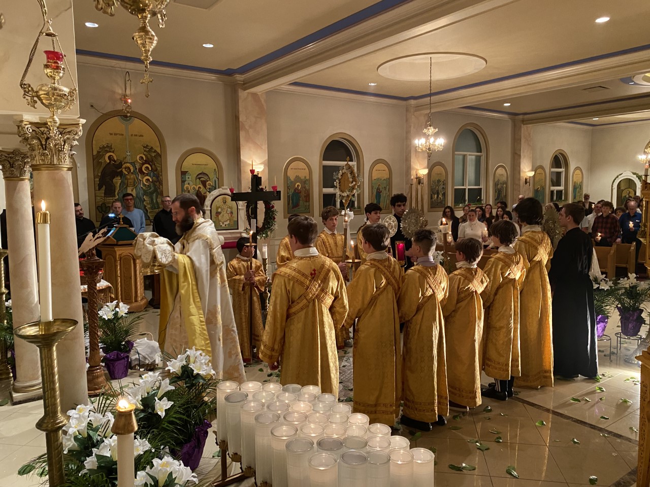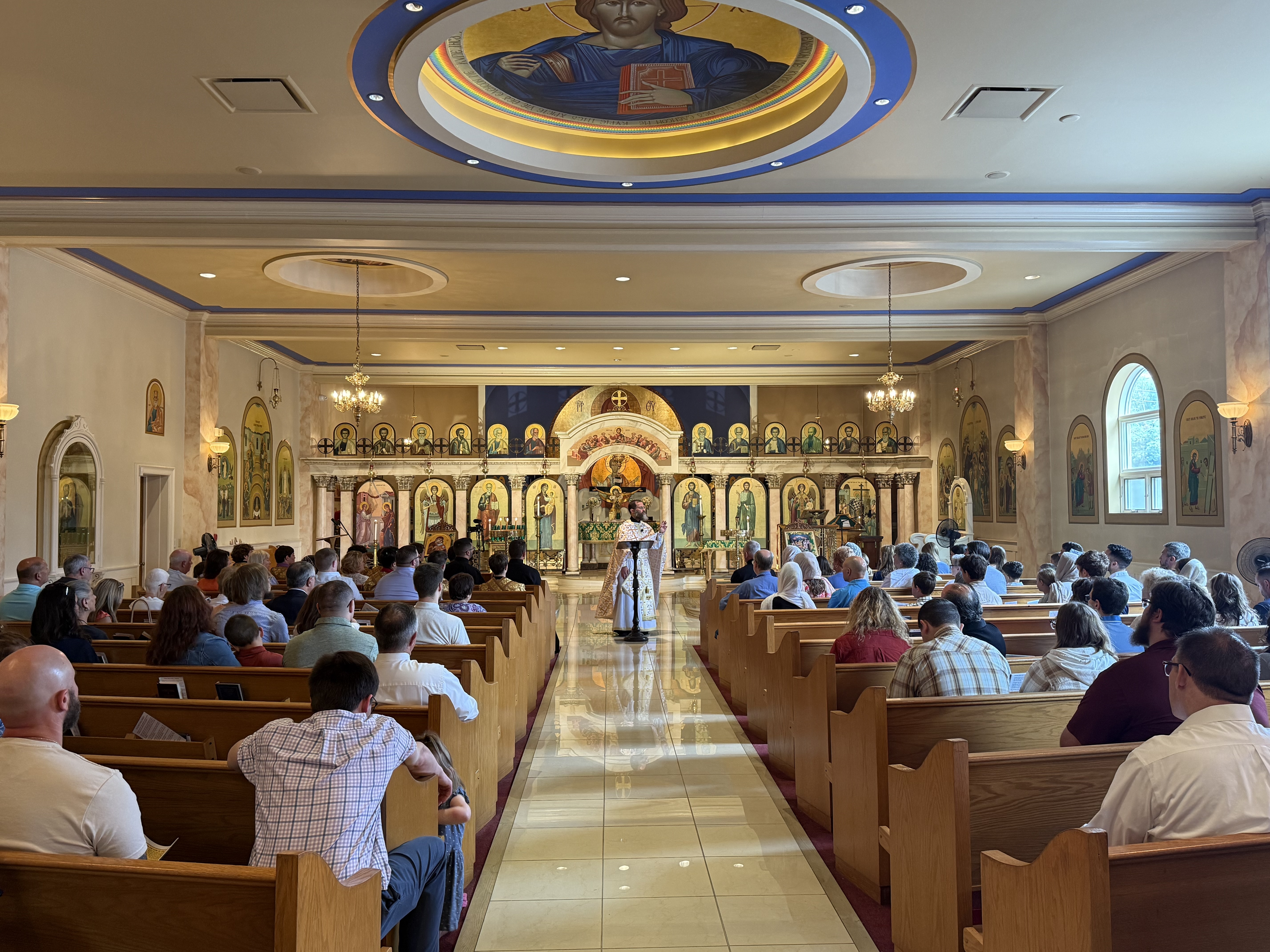 Our choir is a traditional, antiphonal Byzantine choir. ‘Antiphonal’ means that there is both a left and right choir that alternate. We chant from music written in Byzantine notation. Our chanters have put in a lot of effort to bring this ancient tradition to America. Come and listen! It sounds like nothing else on earth.
